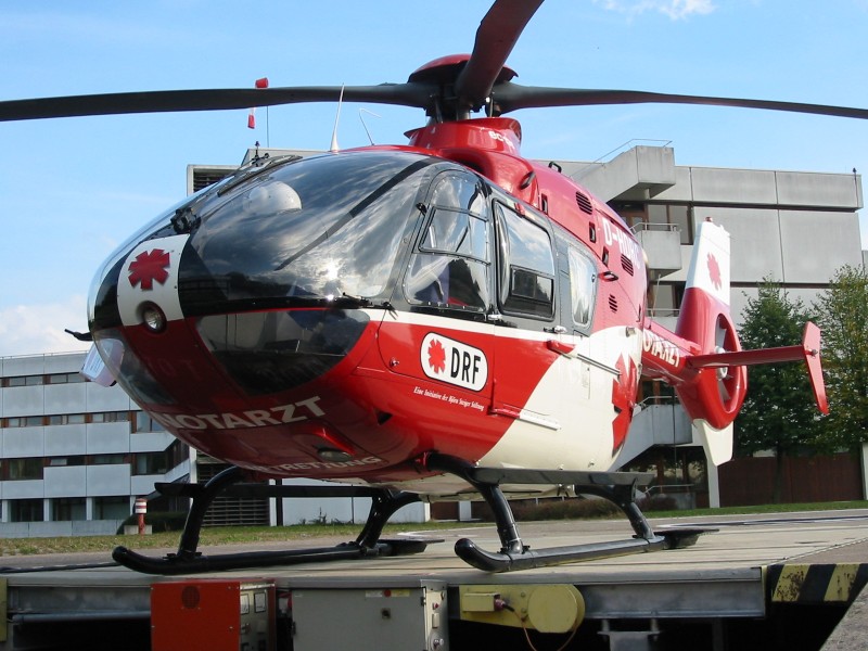 aufgenommen und zeigt den Rettungshubschrauber Christoph 41 der DRF, eine