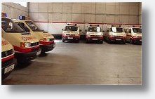 KTW: Notfallkoffer - Verbandsmaterial, Ambu-Beutel + O2-Flasche, O2 Masken+Brillen, Blutzuckermessstreifen u. Stecher, Scheren u. Pinzetten, Stetoskop + RR-Manschette, usw. Trage, Tragsessel, Absauger, Automat. Defi, SamSplint-Schienen, Arztkoffer, Rettungstuch, 2 KTW haben Schwebetragen. RTW: Selbiges + BZ-Messgerät, Waschbecken, grosser Arztkoffer, Kinderkoffer, Vak.-Arm- und Beinschienen, 2. Ambu, StifNeck, Rettungsteddys, Schaufeltrage, Schwebetrage und eine Menge mehr von jedem Teil als am KTW. Die Kommunikation erfolgt meist über Datenfunk, jedoch auch über Fahrzeugfunk und Handfunkgeräte, 3 Leute besetzen tagsüber die Funkleitstelle.Der RTW ist das Rettungsmittel N°1, ausser ein KTW ist wesentlich näher am Einsatzort, oder es ist kein RTW verfügbar, bzw. der Auftrag ist nicht RTW-indiziert. Für den NAW gibt es eine Indikationsliste. Der NAW steht im Unfallkrankenhaus und die anderen Fahrzeuge stehen in 2 Dienststellen, es werden aber bald 3. |