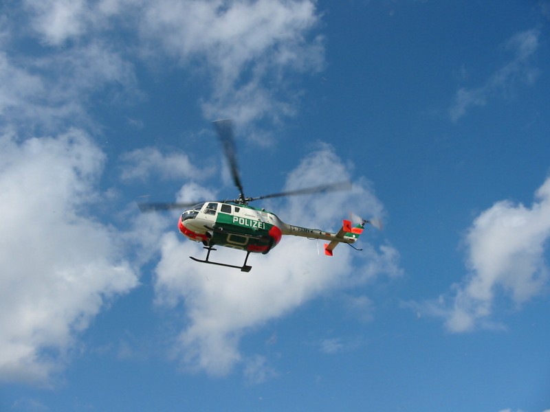 und zeigt einen Polizeihubschrauber im Durchflug mit ca. 200 km/h !!