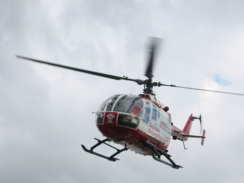 und zeigt den Rettungshubschrauber Christoph 11 der DRF, eine BO 105.