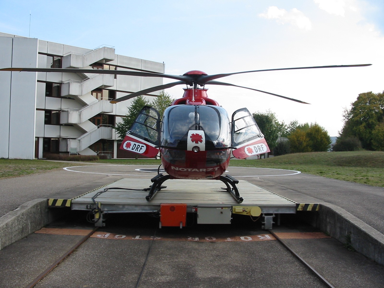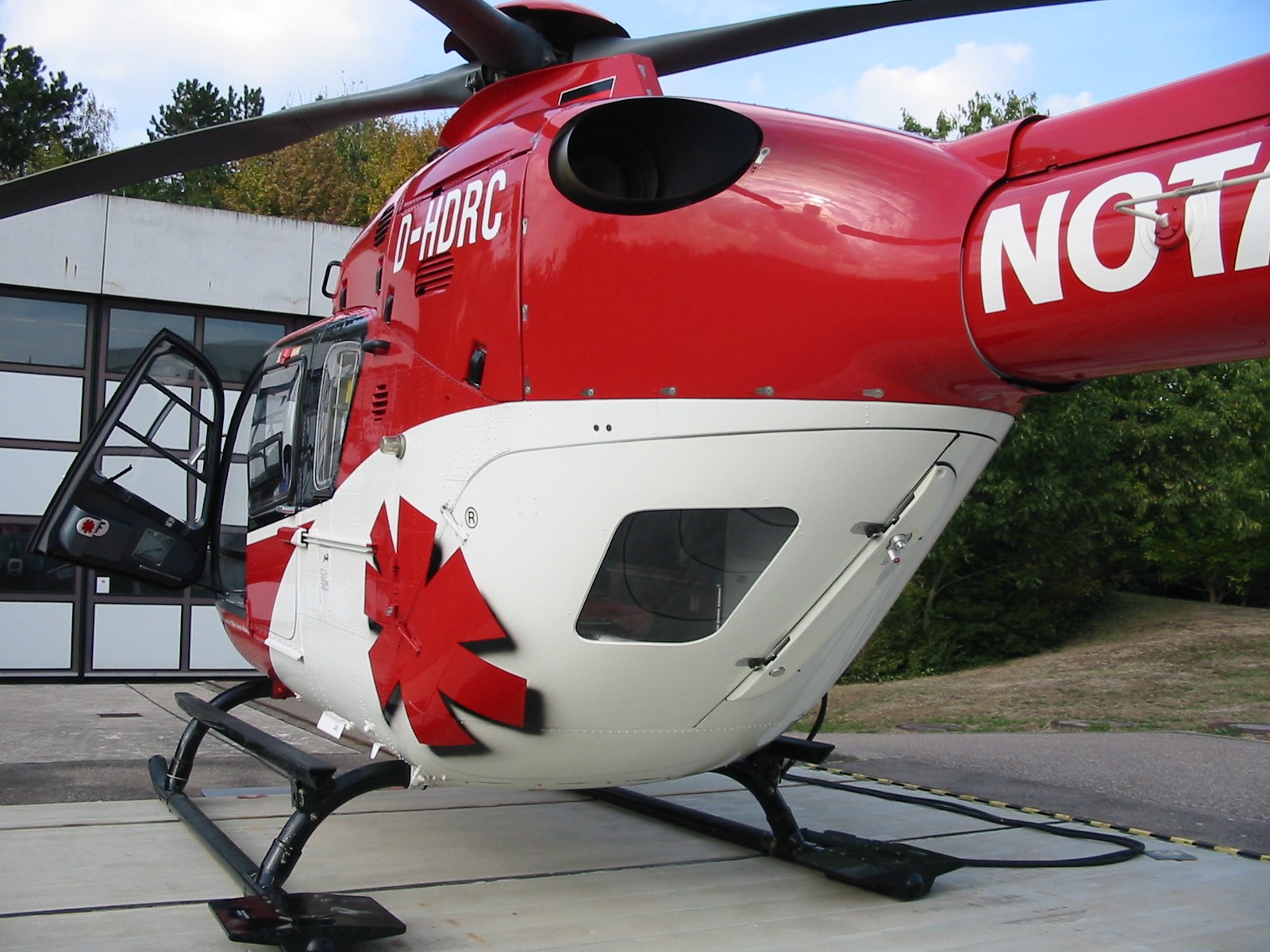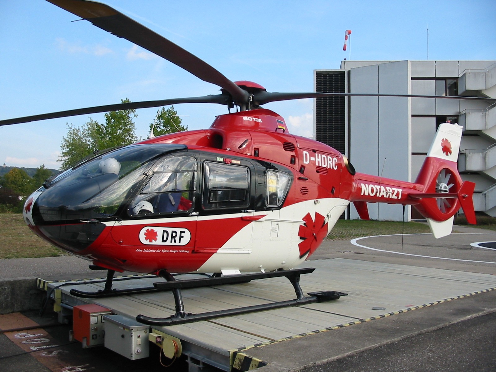 aufgenommen und zeigt den Rettungshubschrauber Christoph 41 der DRF, eine