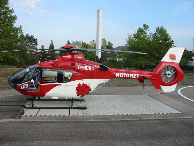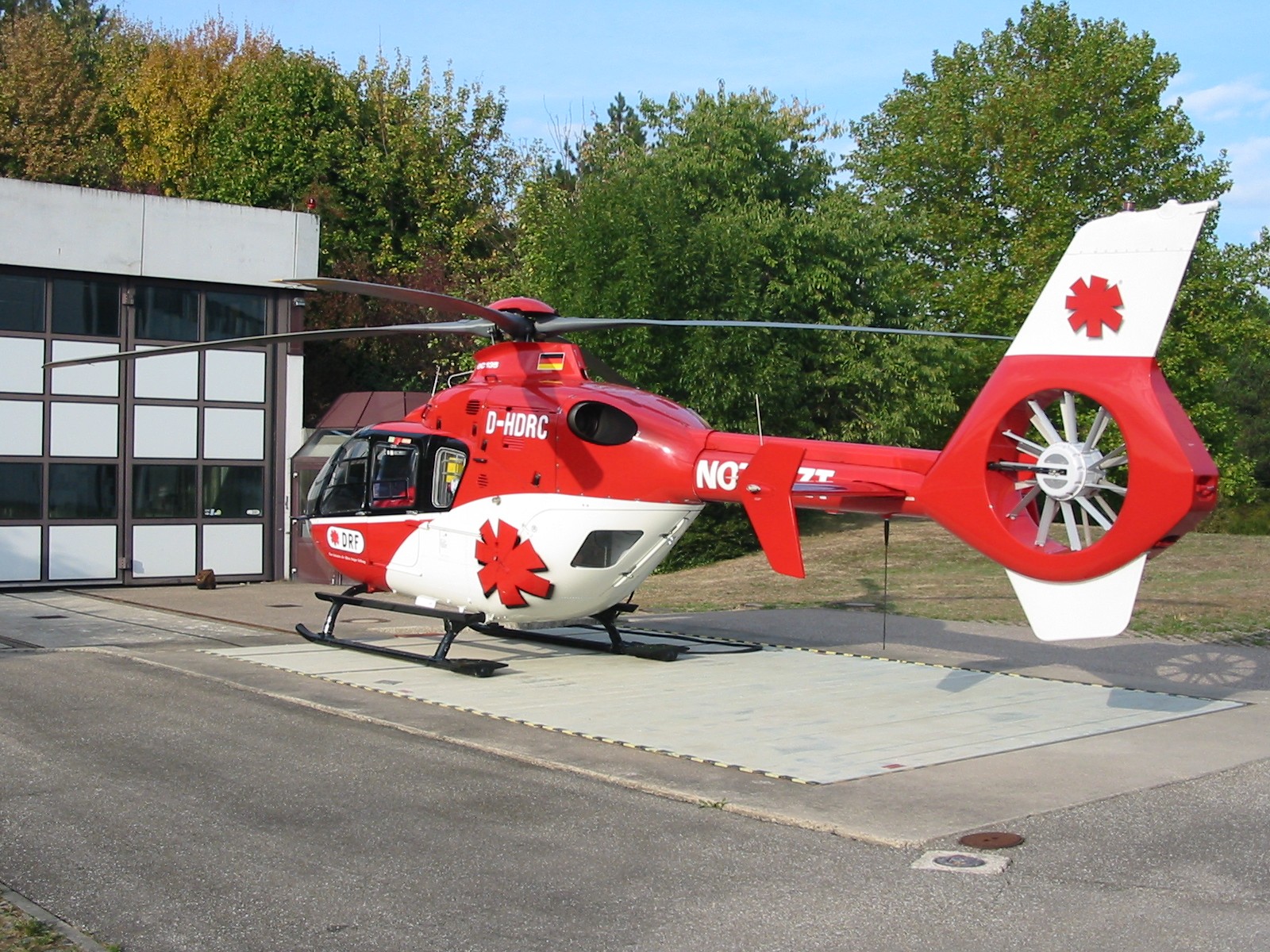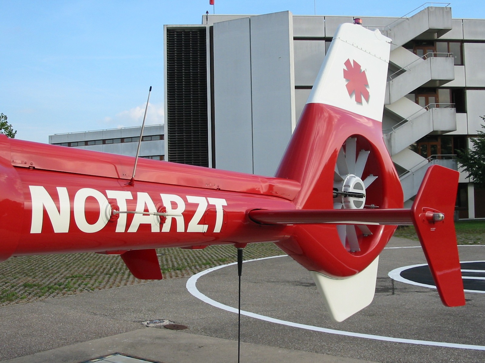 aufgenommen und zeigt den Rettungshubschrauber Christoph 41 der DRF, eine